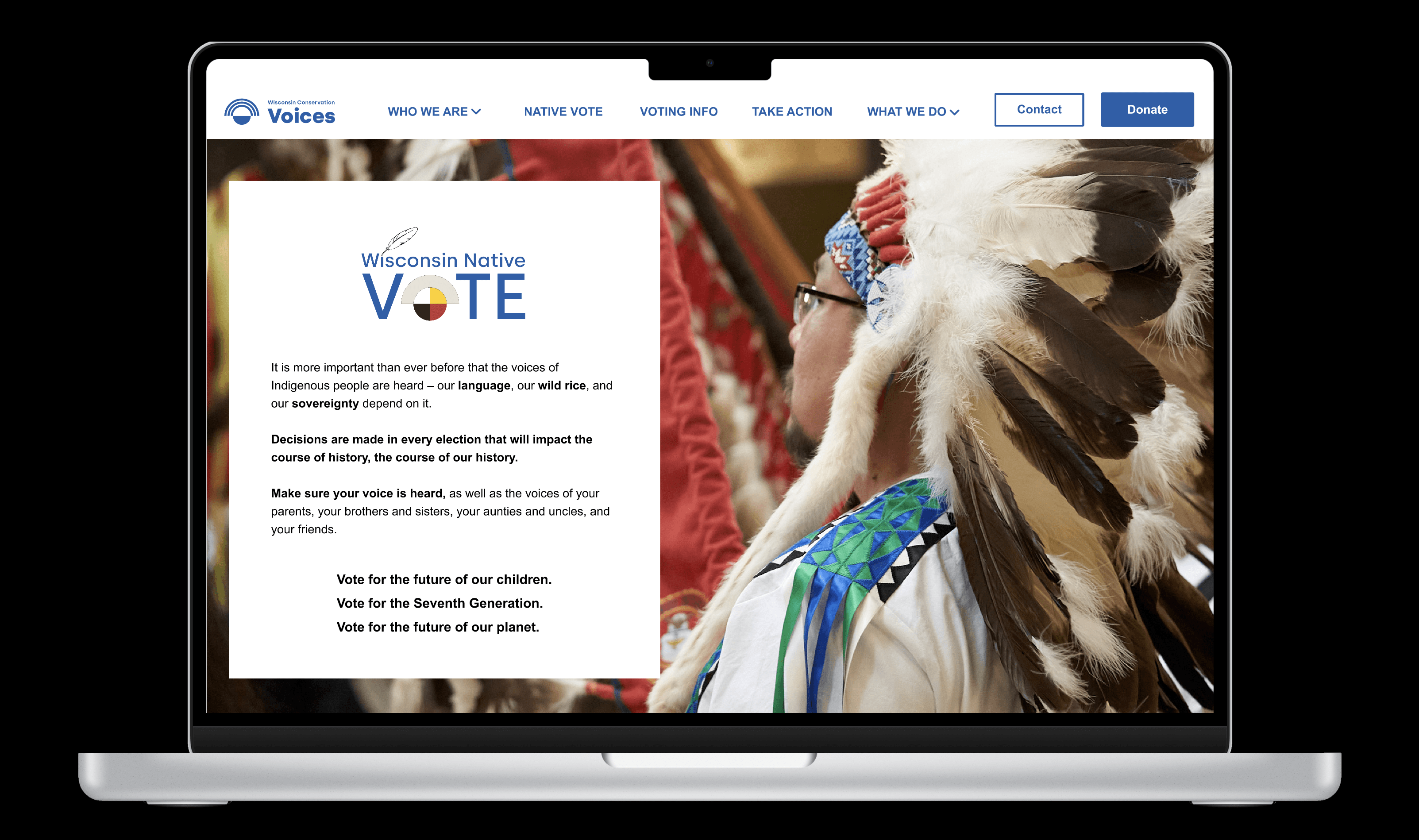 Wisconsin Conservation Voices needed a redesign of their Native Vote page to better explain the program, highlight the impacts, and engage Native audiences with the users in mind and a redesign of their Voting Info page to make voting instructions clearer, more accessible, and easier to navigate.